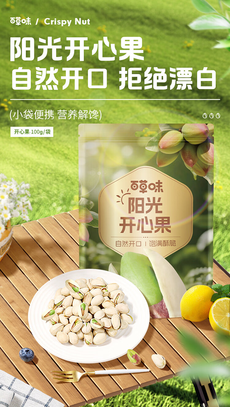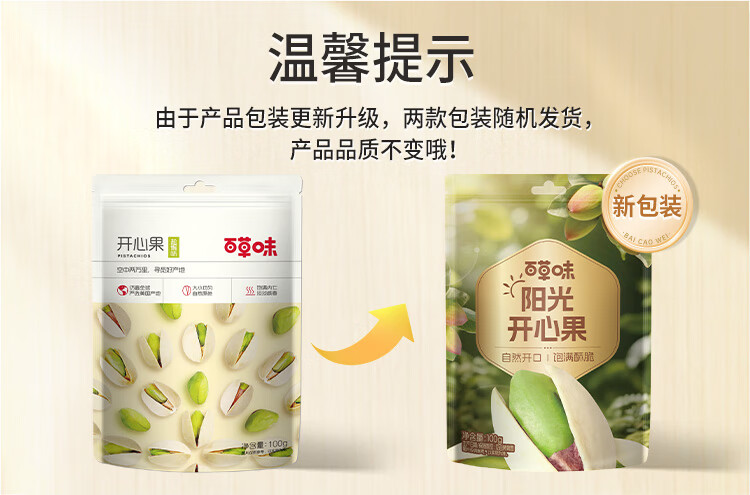 百草味开心果盐焗味100g 每日坚果干果休闲零食特产新老包装随机发