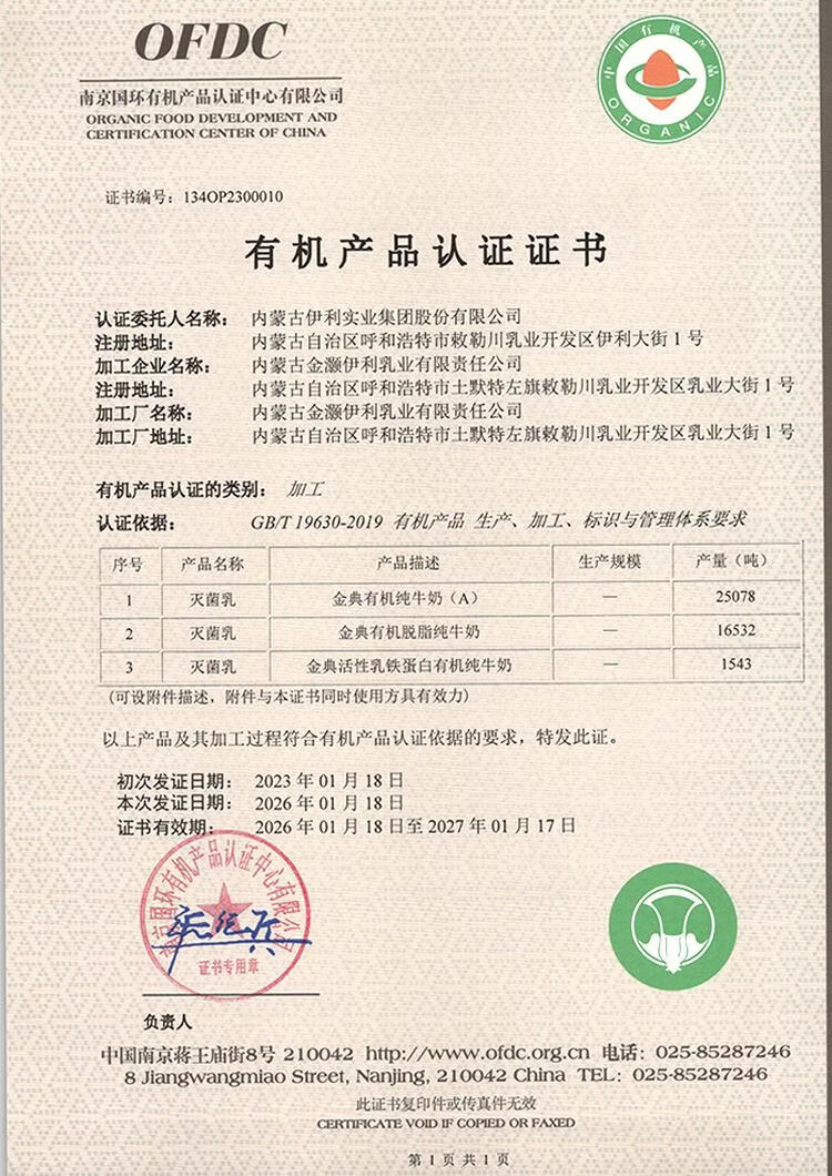 伊利【新鲜日期】金典有机纯牛奶整箱 250ml*16盒 3.6g乳蛋白 礼盒裝