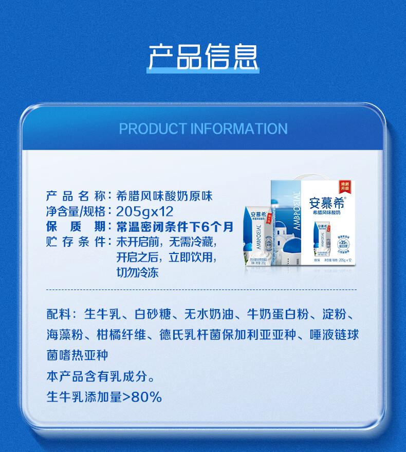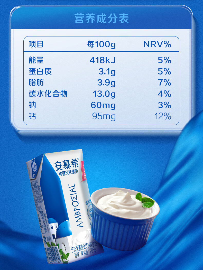 伊利【新鲜日期】安慕希希腊风味早餐酸奶原味205g*12盒 礼盒装