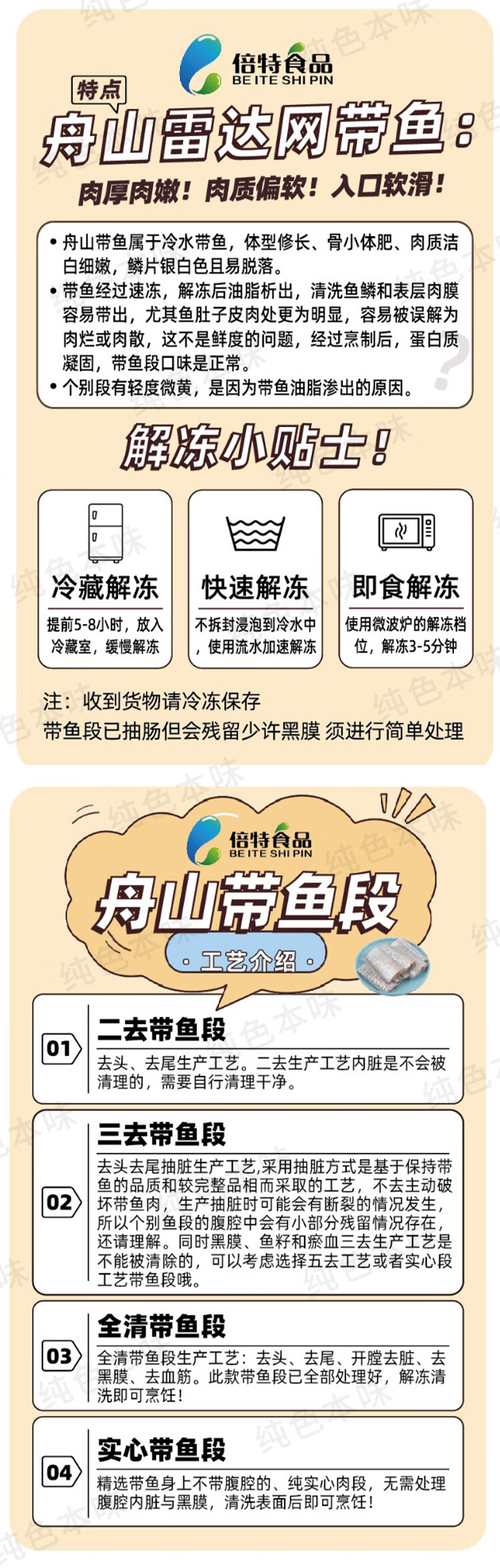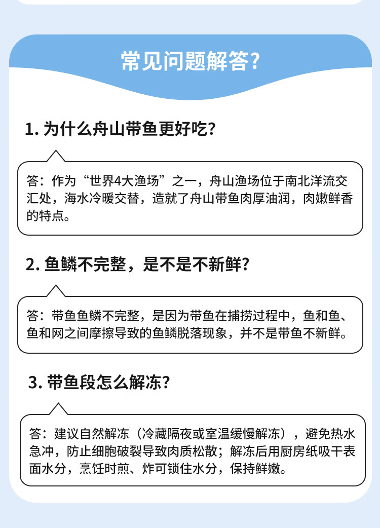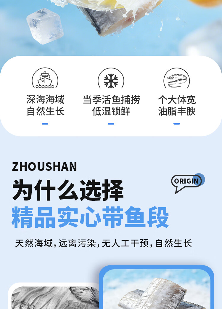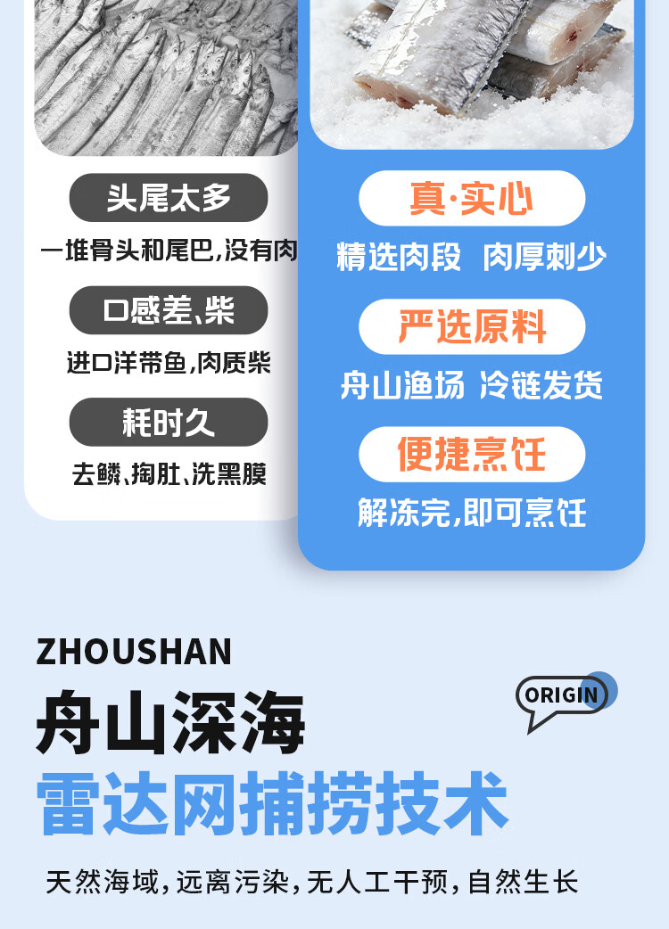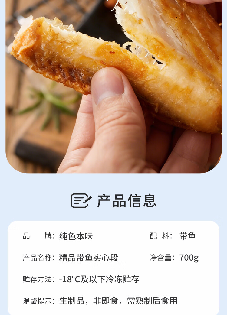 纯色本味舟山精品带鱼段实心段700g 烧烤 一鱼只取肉段