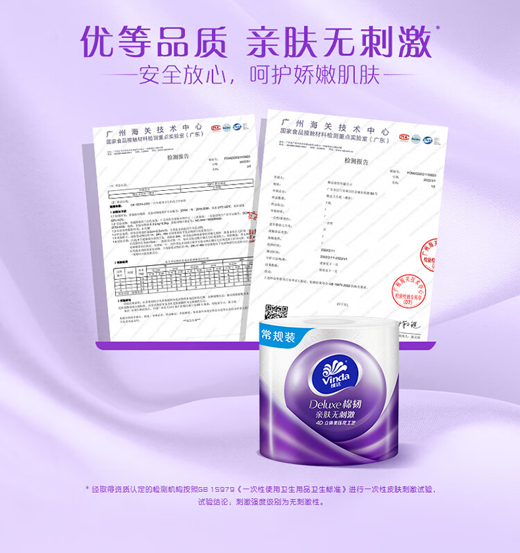 维达(Vinda) 有芯卷纸 棉韧立体美4层125克*30卷 亲肤无刺激 卫生卷筒纸 纸巾