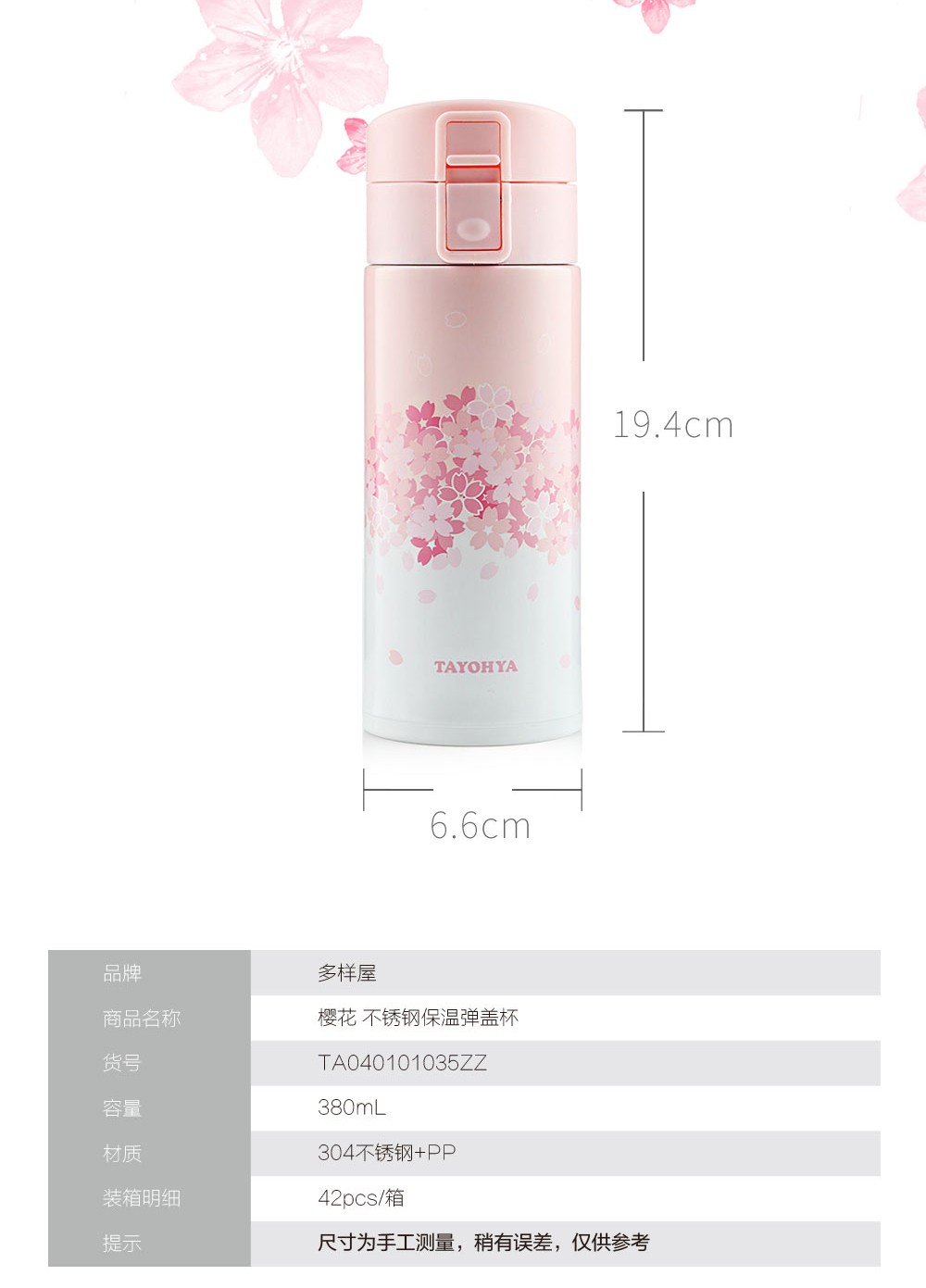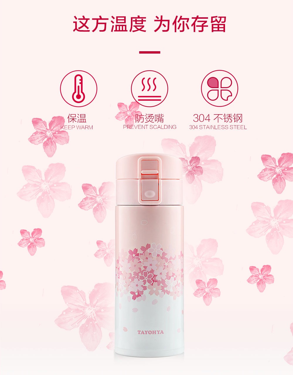 多样屋(TAYOHYA)樱花不锈钢保温弹盖杯