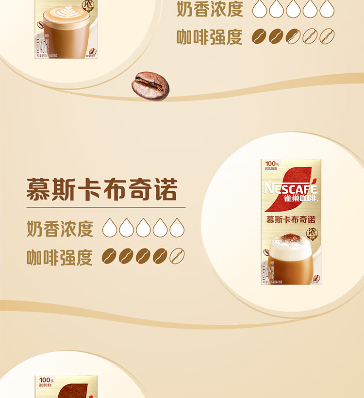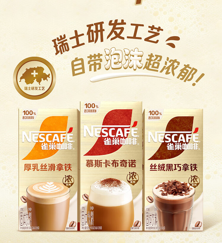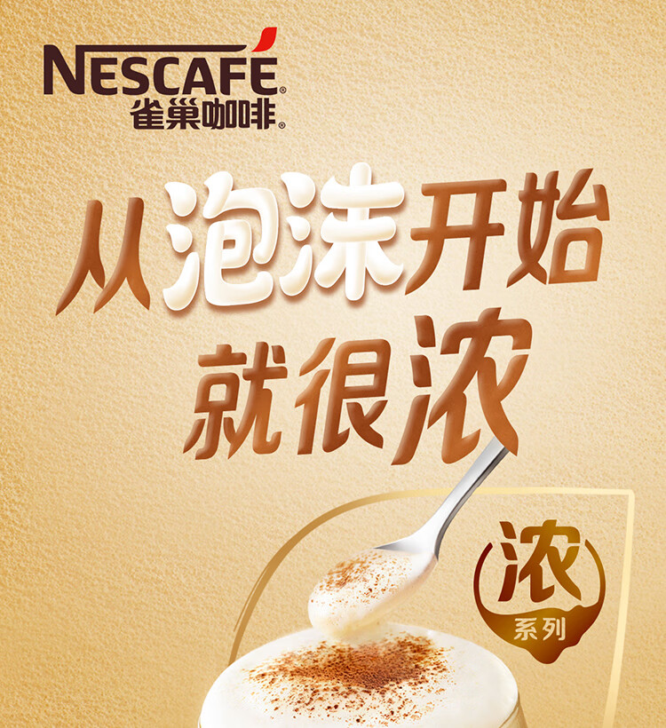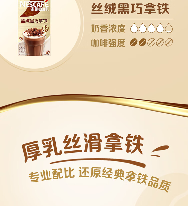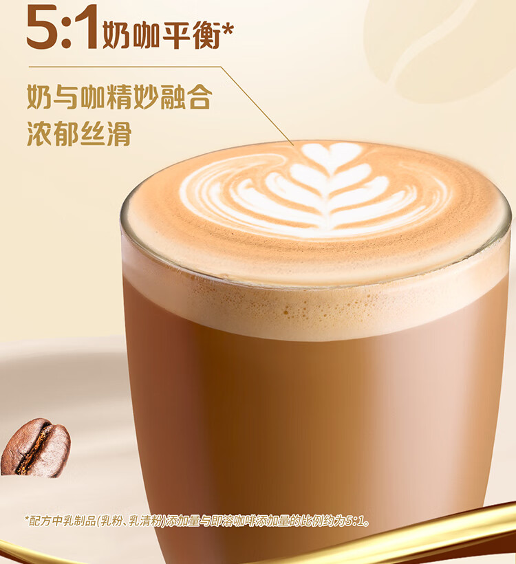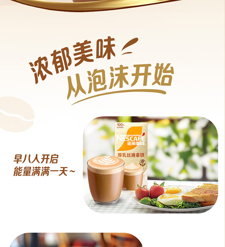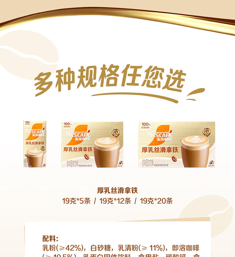 雀巢(Nestle)咖啡浓系列厚乳丝滑拿铁速溶咖啡三合一减蔗糖冲调饮品19g*20条