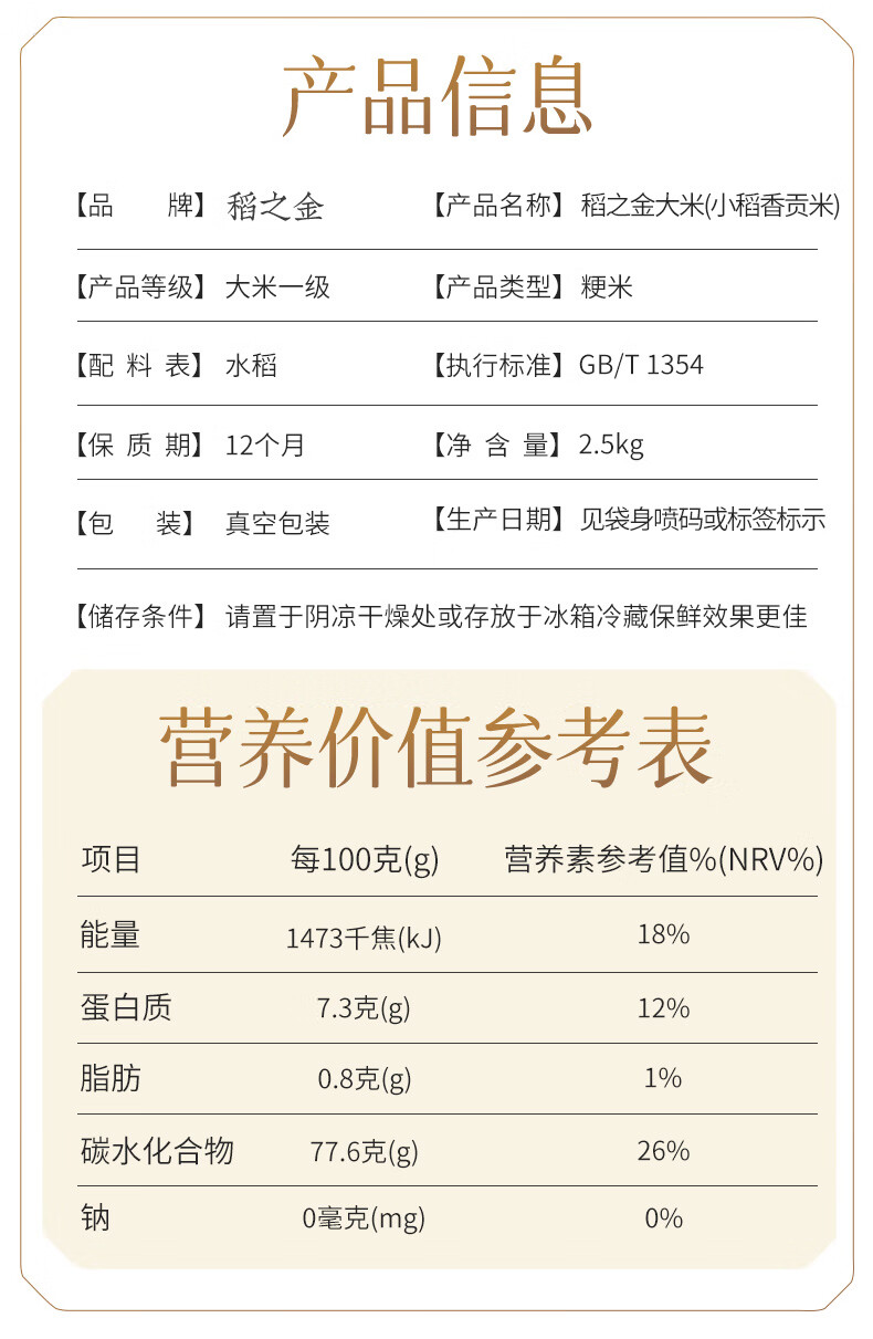 稻之金 小稻香贡米 东北大米粳米2.5kg