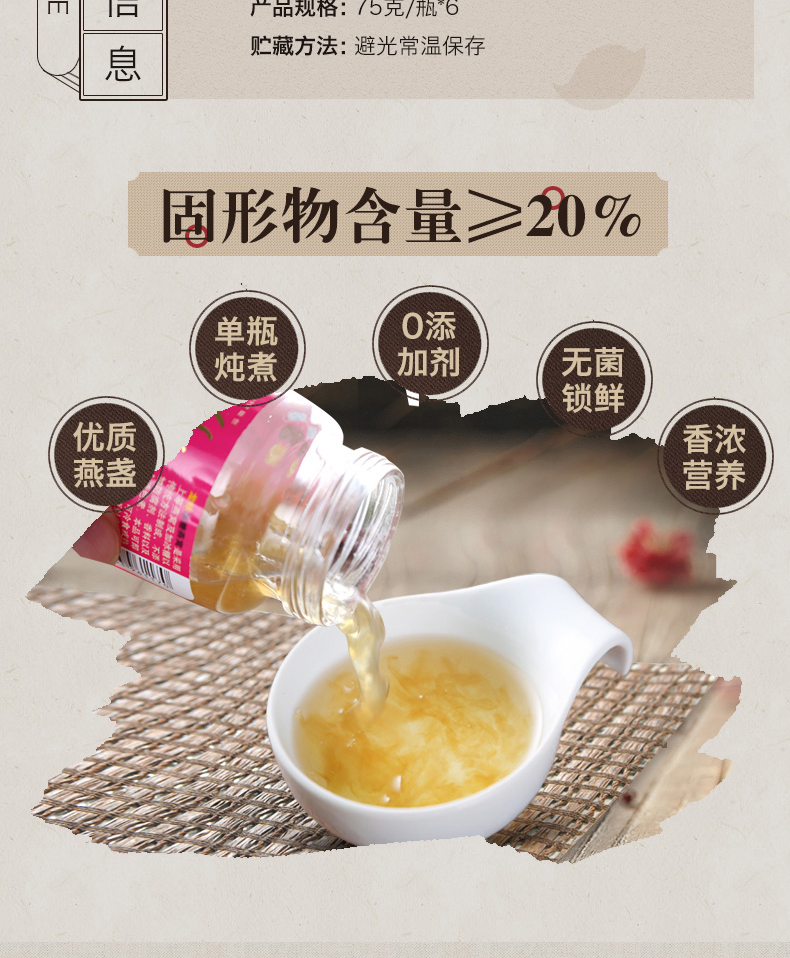 参之源龙标即食燕窝75g*6