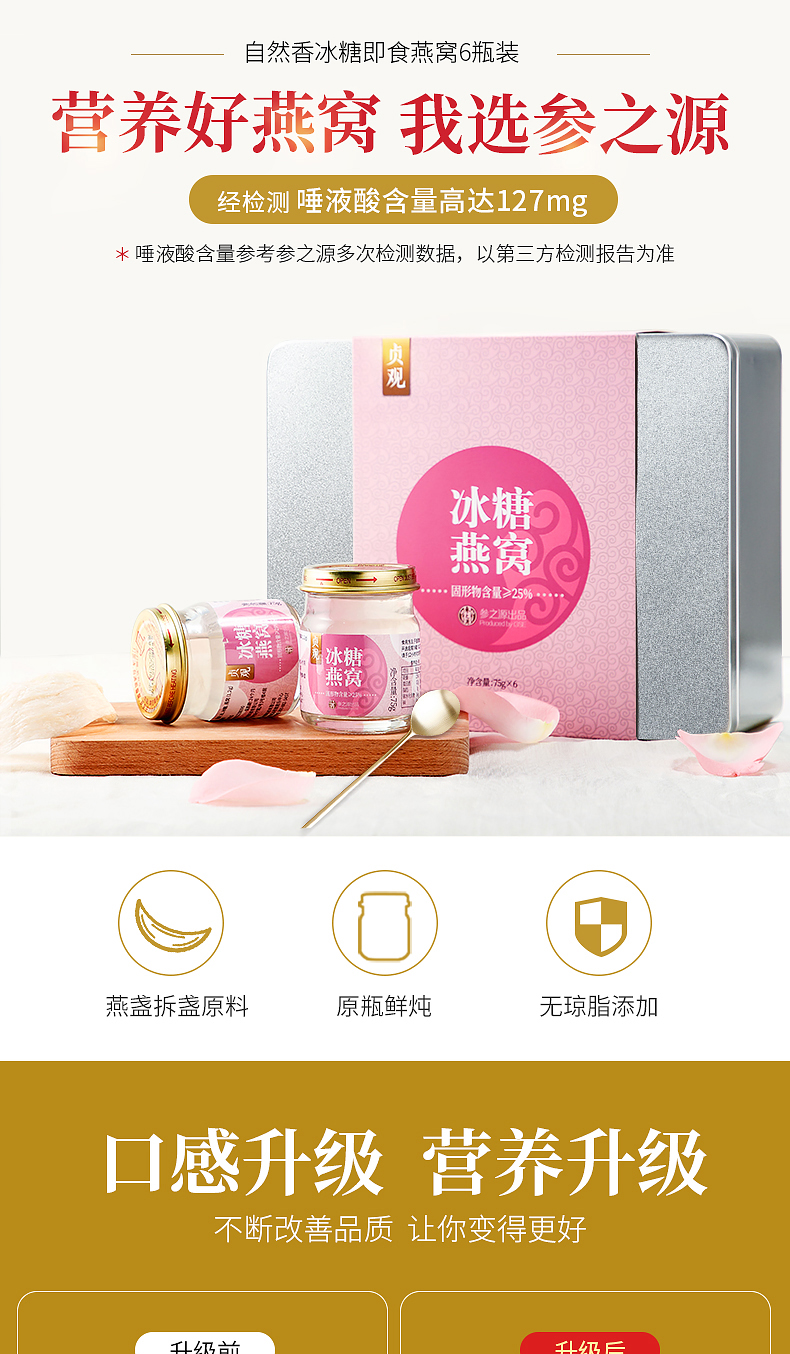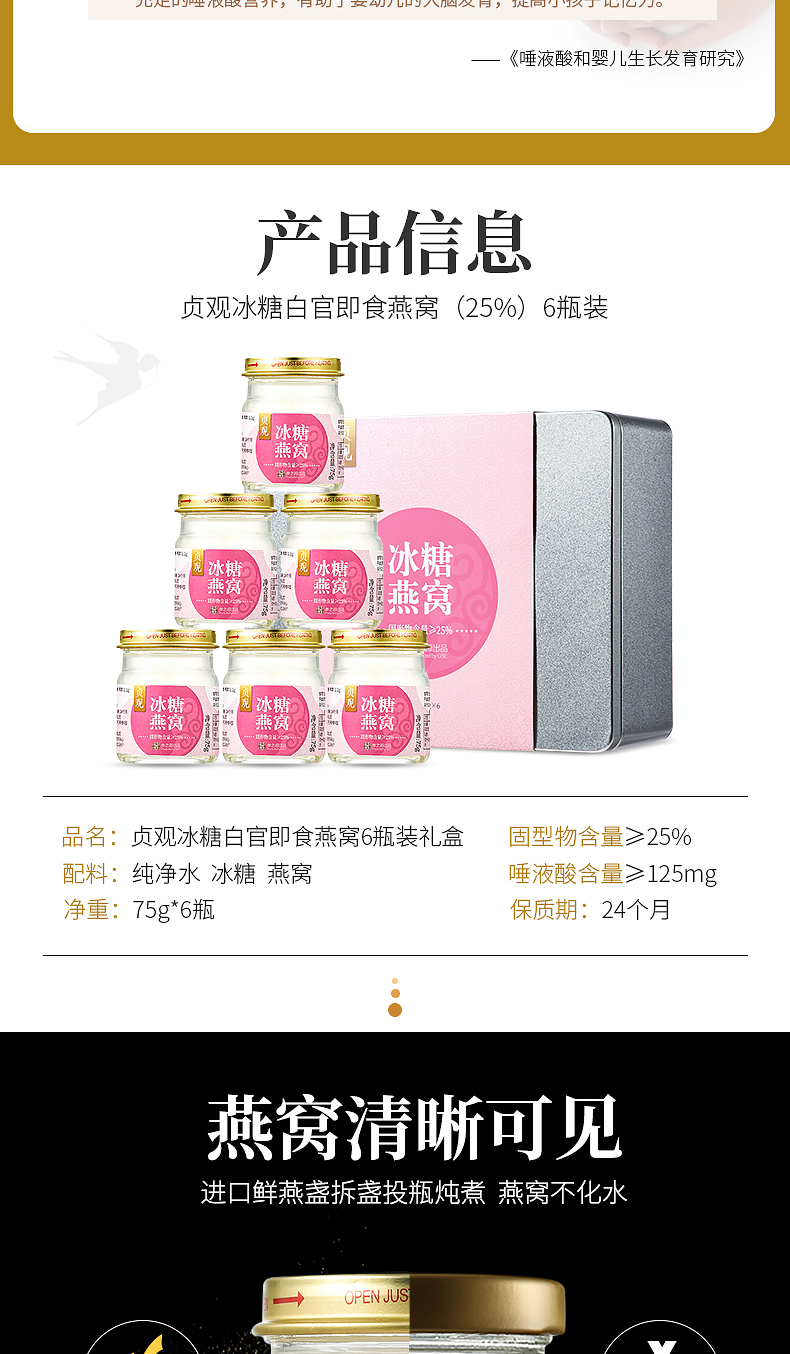 参之源白官燕冰糖即食燕窝75g*6