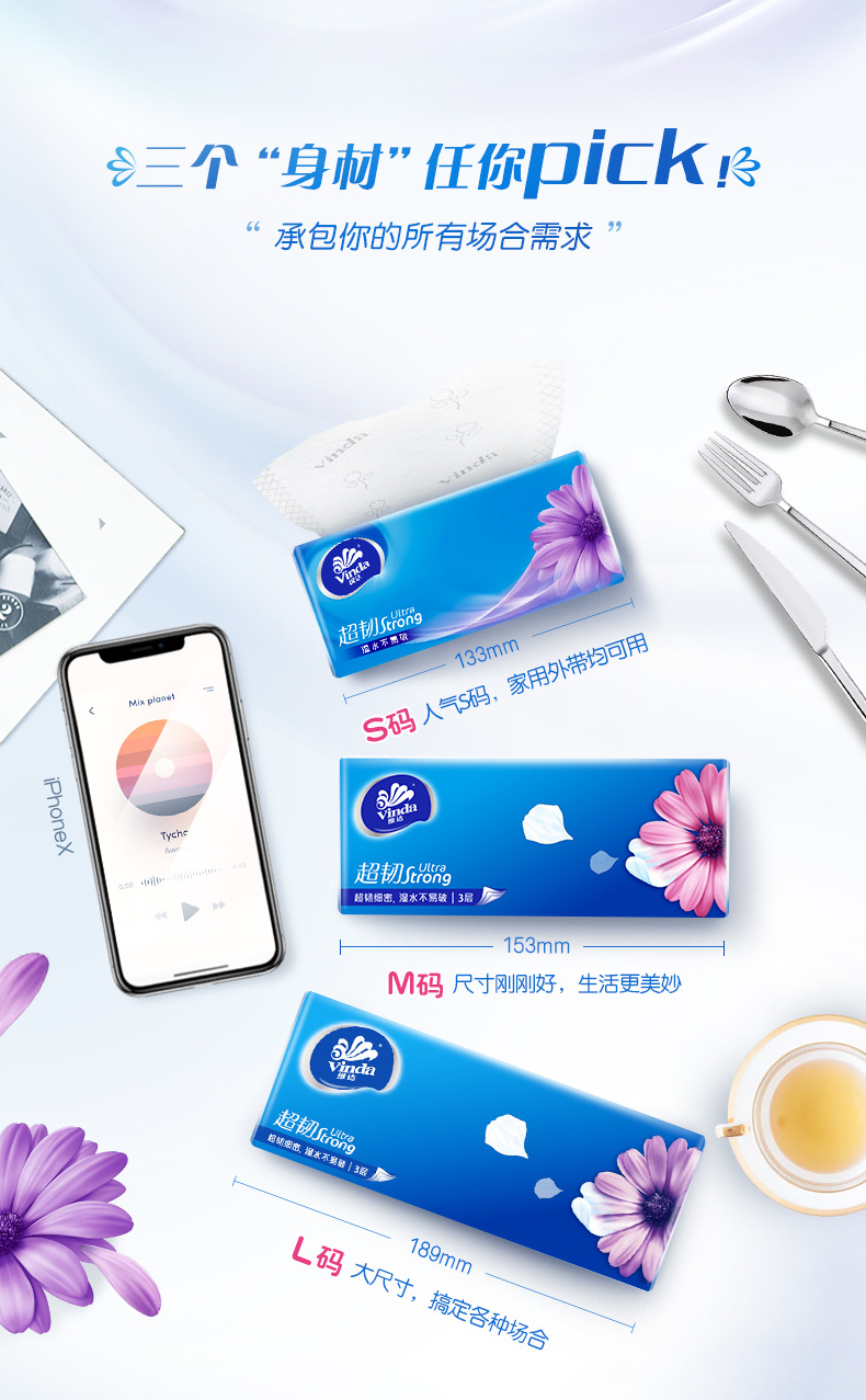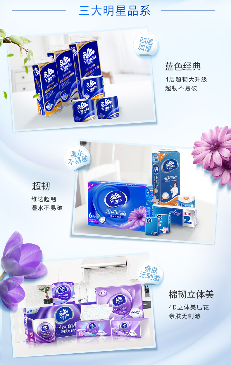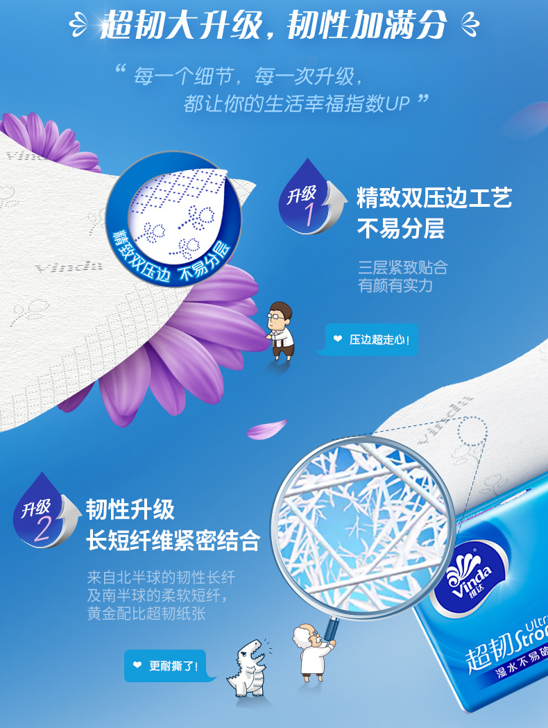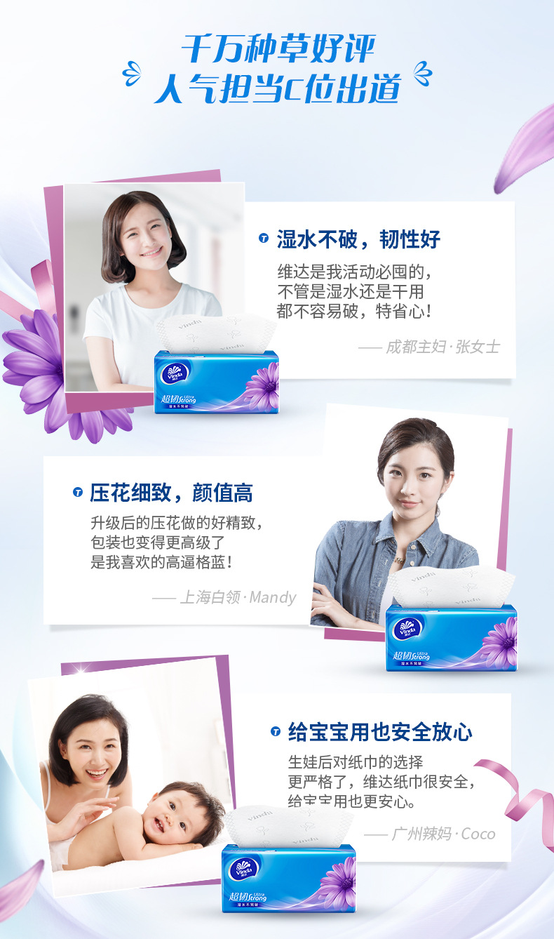 维达超韧抽纸V2239面巾纸3层130抽6包卫生纸餐巾纸家用大包纸巾