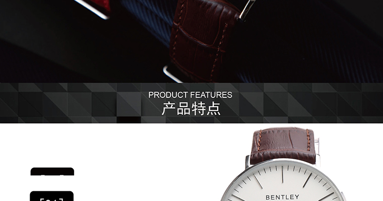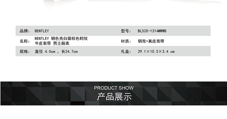 BENTLEY鳄纹牛皮表带男士腕表
