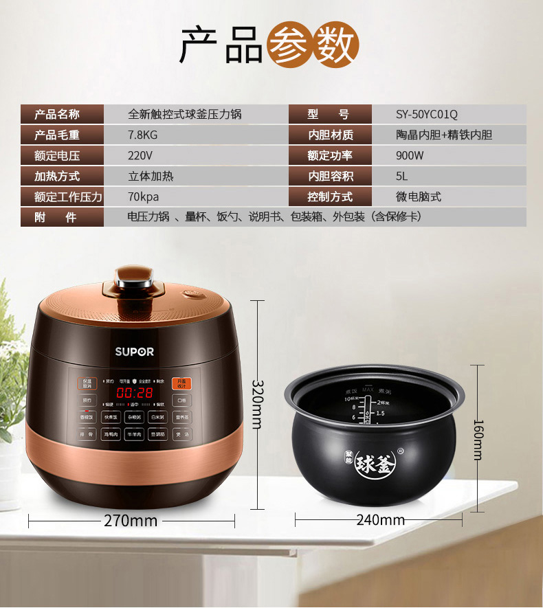 苏泊尔智能球釜电压力锅5L
