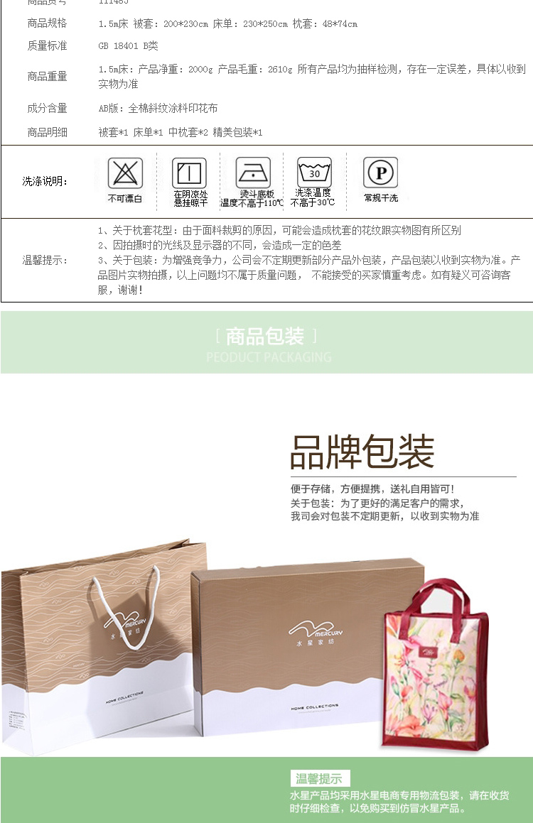 水星笑春风负离子四件套