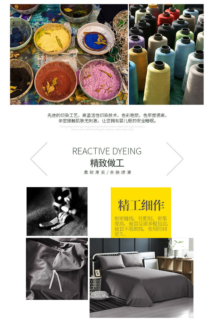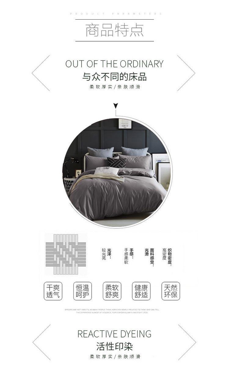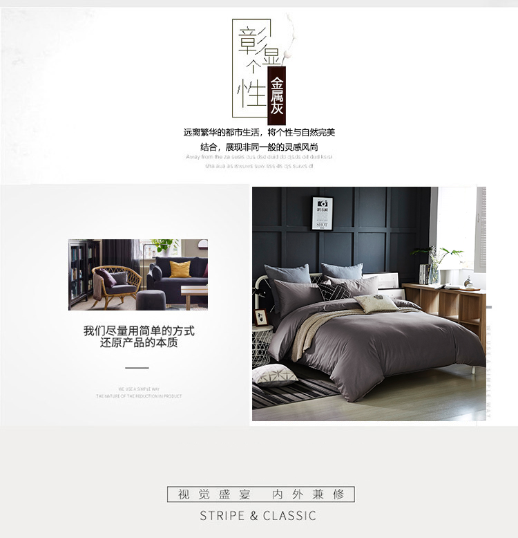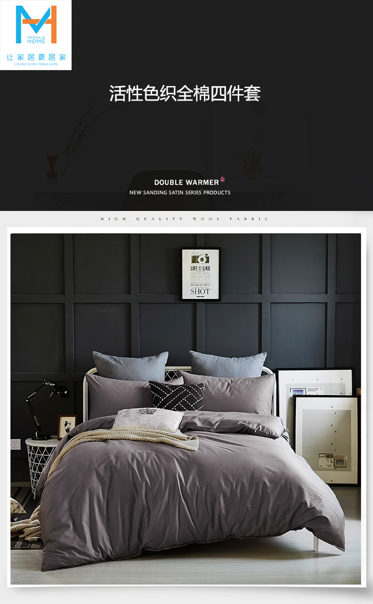 梦洁活性色织全棉四件套系列-金属灰