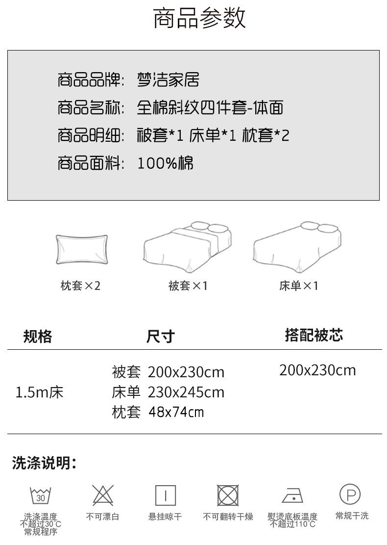 梦洁斜纹全棉四件套系列-体面