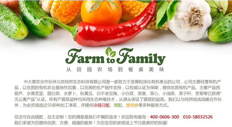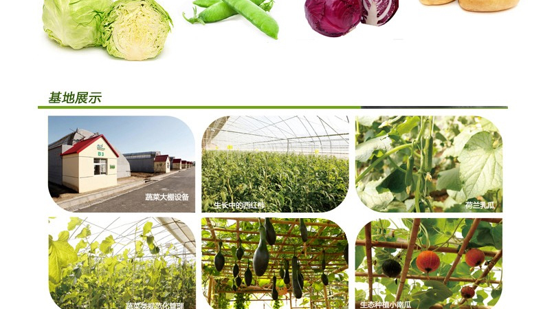 ▽绿色蔬菜精选小汤山特菜基地种植的无公害绿色蔬菜包装而成,所有蔬菜种类均已达到或超过国家要求的无公害绿色蔬菜