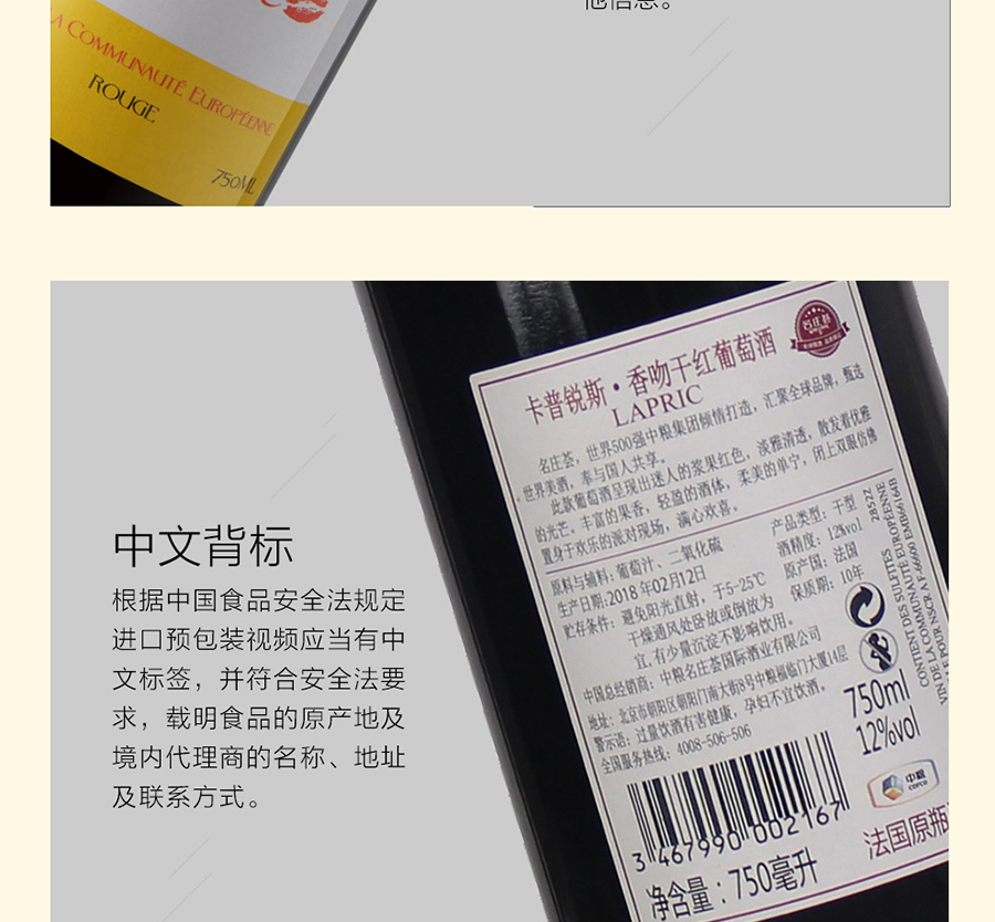 中粮名庄荟法国进口卡普锐斯·香吻干红葡萄酒礼盒