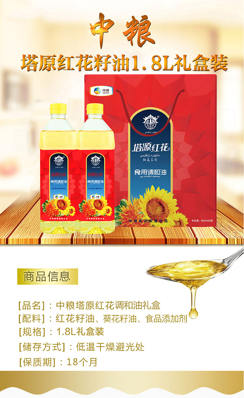 中粮塔源红花籽调和油礼盒900ml*2