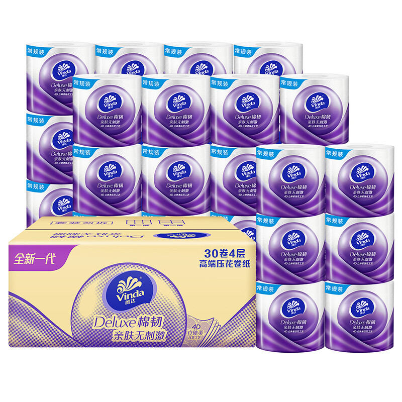 维达(Vinda) 有芯卷纸 棉韧立体美4层125克*30卷 亲肤无刺激 卫生卷筒纸 纸巾