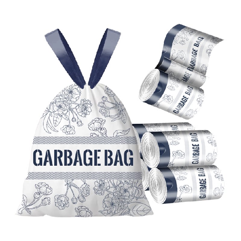 利得免撕印花抽绳垃圾袋加厚厨房家用馥郁花45*50cm*100只双面2丝