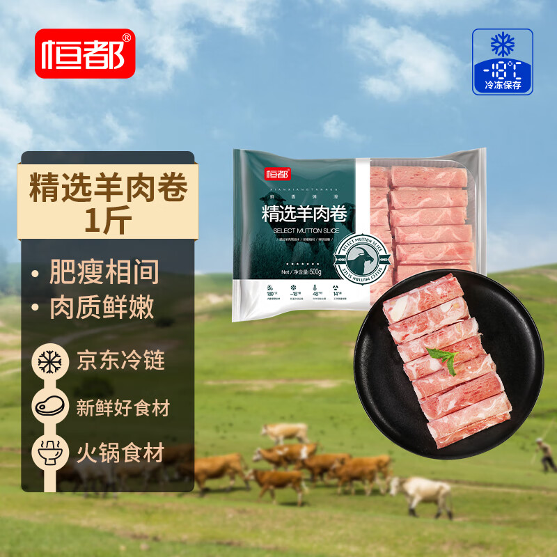恒都 国产精选羊肉卷 1斤 冷冻 火锅食材 羊肉片 生鲜