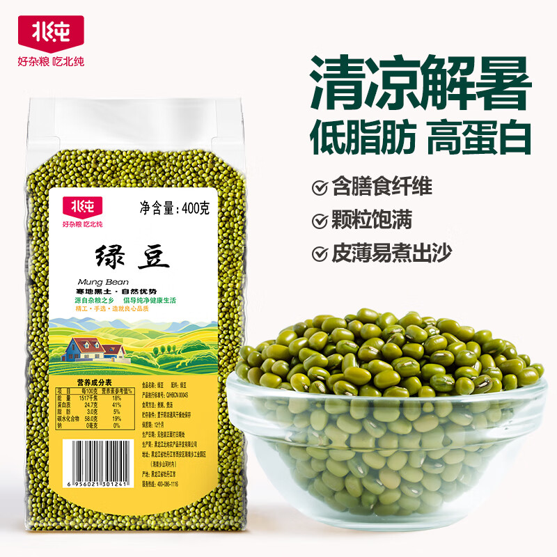 北纯 绿豆400g/袋(高膳纤富铁 镁可发豆芽东北杂粮 皮薄易煮出砂)